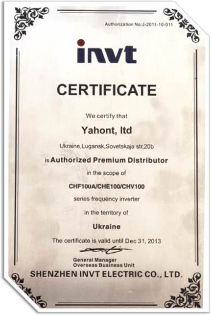 СПРАВКА: Сервисная компания ЯХОНТ является эксклюзивным дистрибьютором преобразователей частоты INVT в Украине с 2010 года. С тех пор украинскими предприятиями установлено и успешно эксплуатируются более 7 000 частотных преобразователей производства INVT. Основанная в 2002 году, компания Shenzhen INVT Electric Co., Ltd. в настоящее время экспортирует свою продукцию более чем в 65 стран мира.